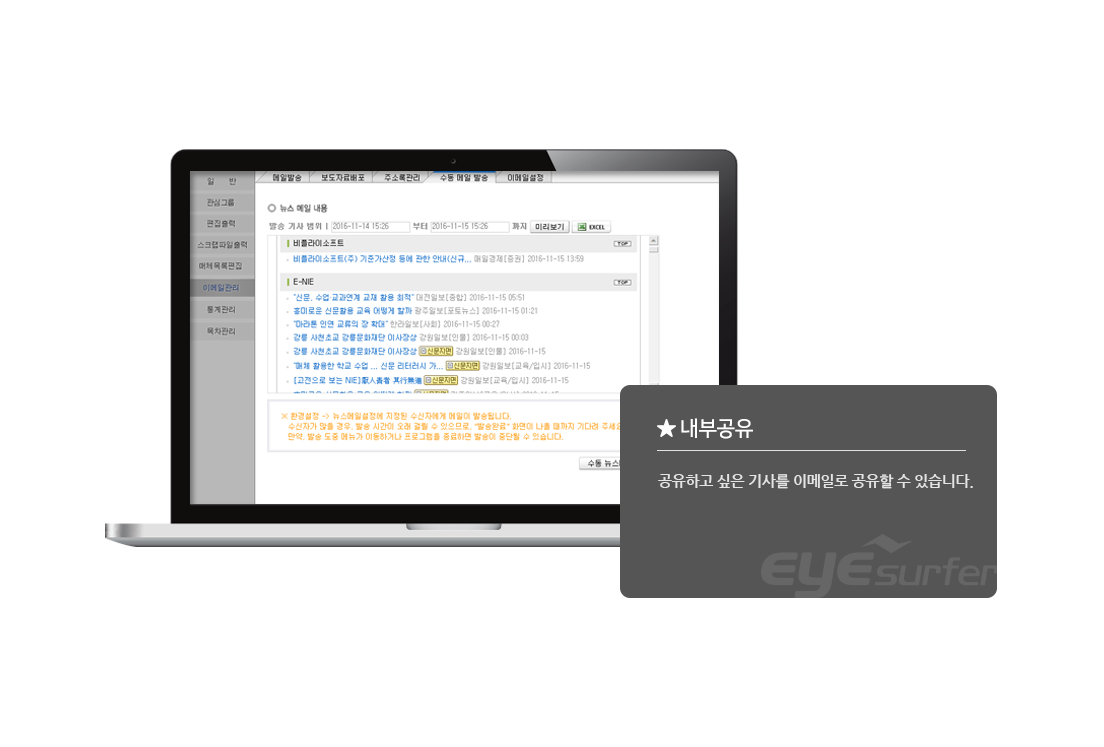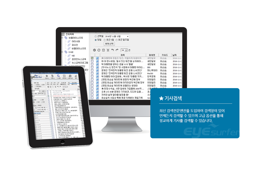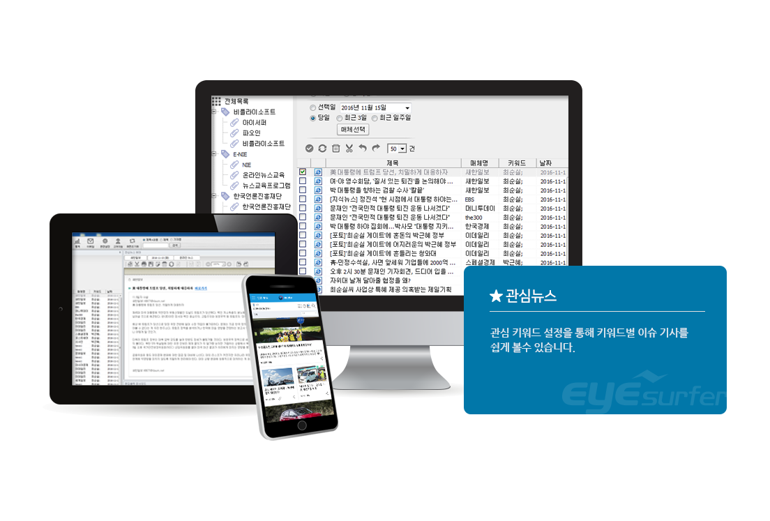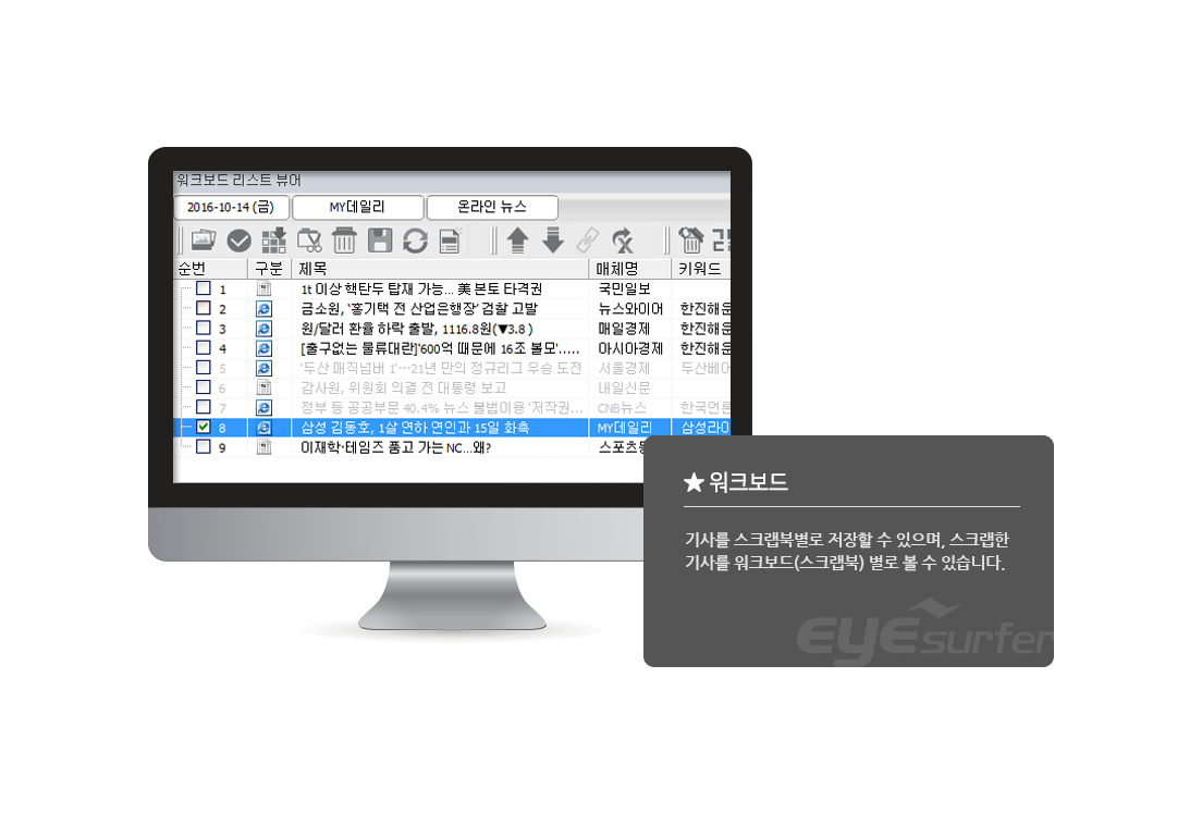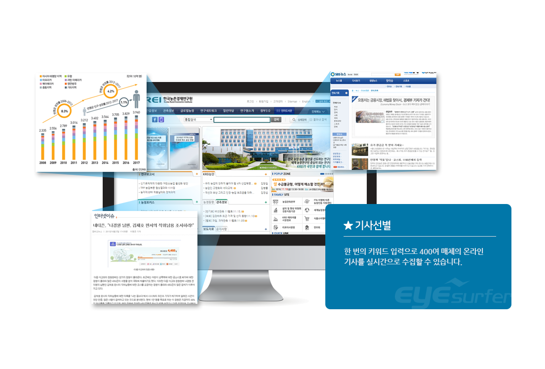 아이서퍼는 국내 최초 지능형 신문스크랩 편집기를 이용하여 고객님께서 원하는 정보를 신문, 잡지, 온라인 뉴스에서