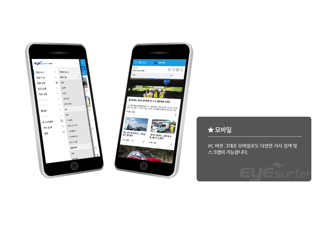 아이서퍼 온에어는 아이서퍼와 연동하여 TV 방송 보도뉴스를 365일 24시간 모니터링 하고 언제 어디서나 스마트폰,